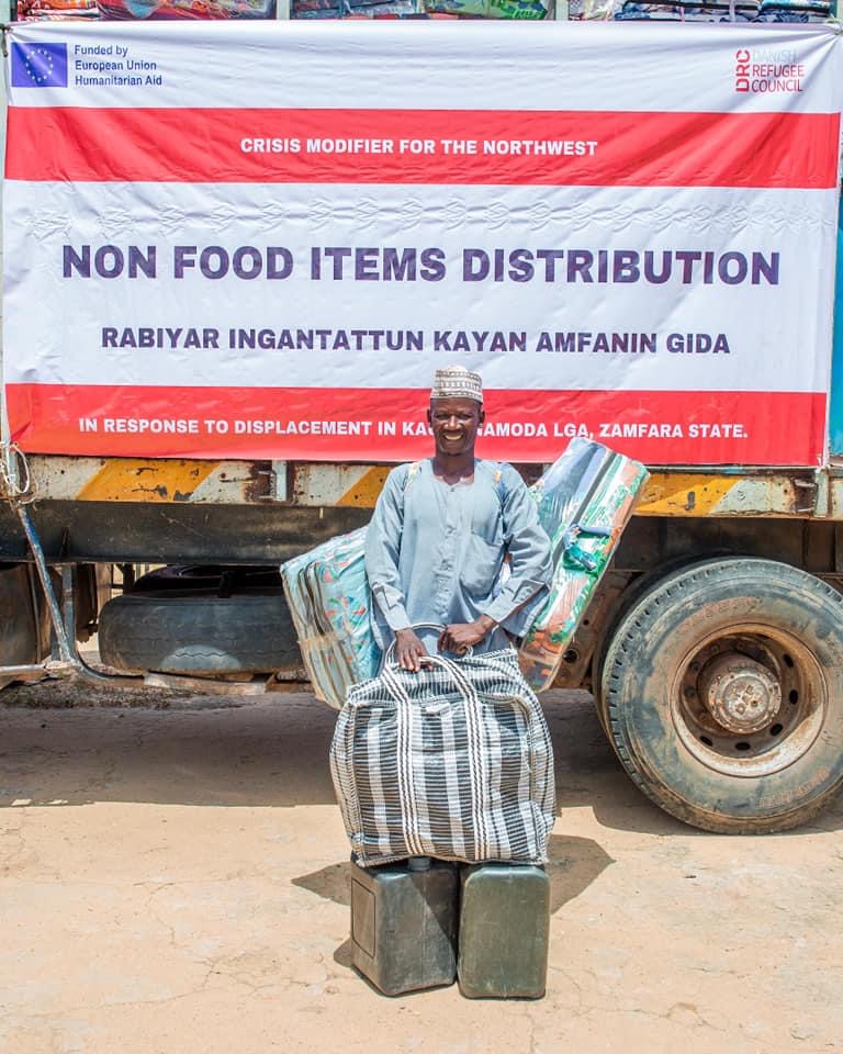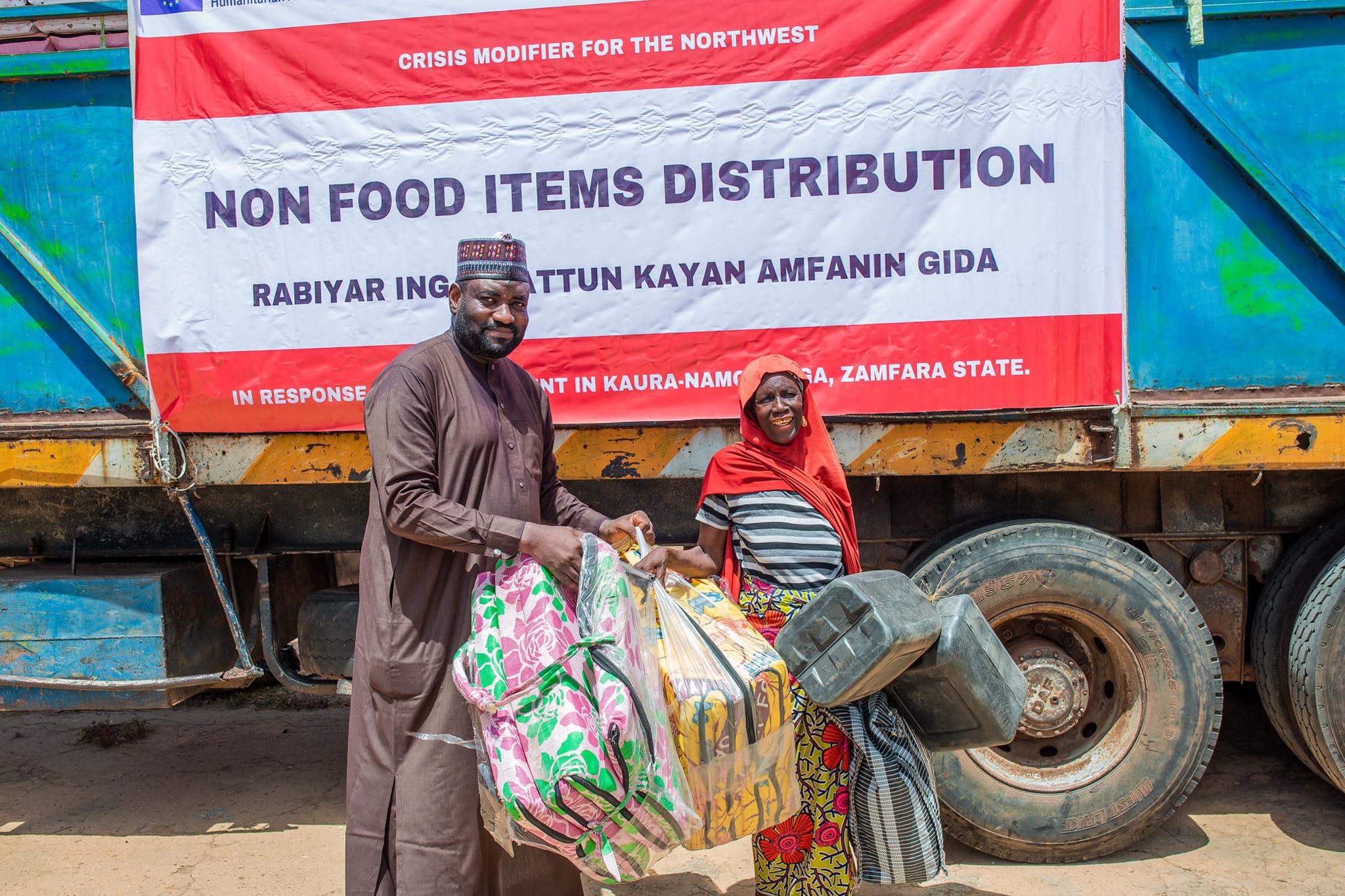 The items distributed to internally displaced persons in Kaura Namoda LGA included Basic Hygiene Kits, Non-Food Items and Shelter Rehabilitation Kits.