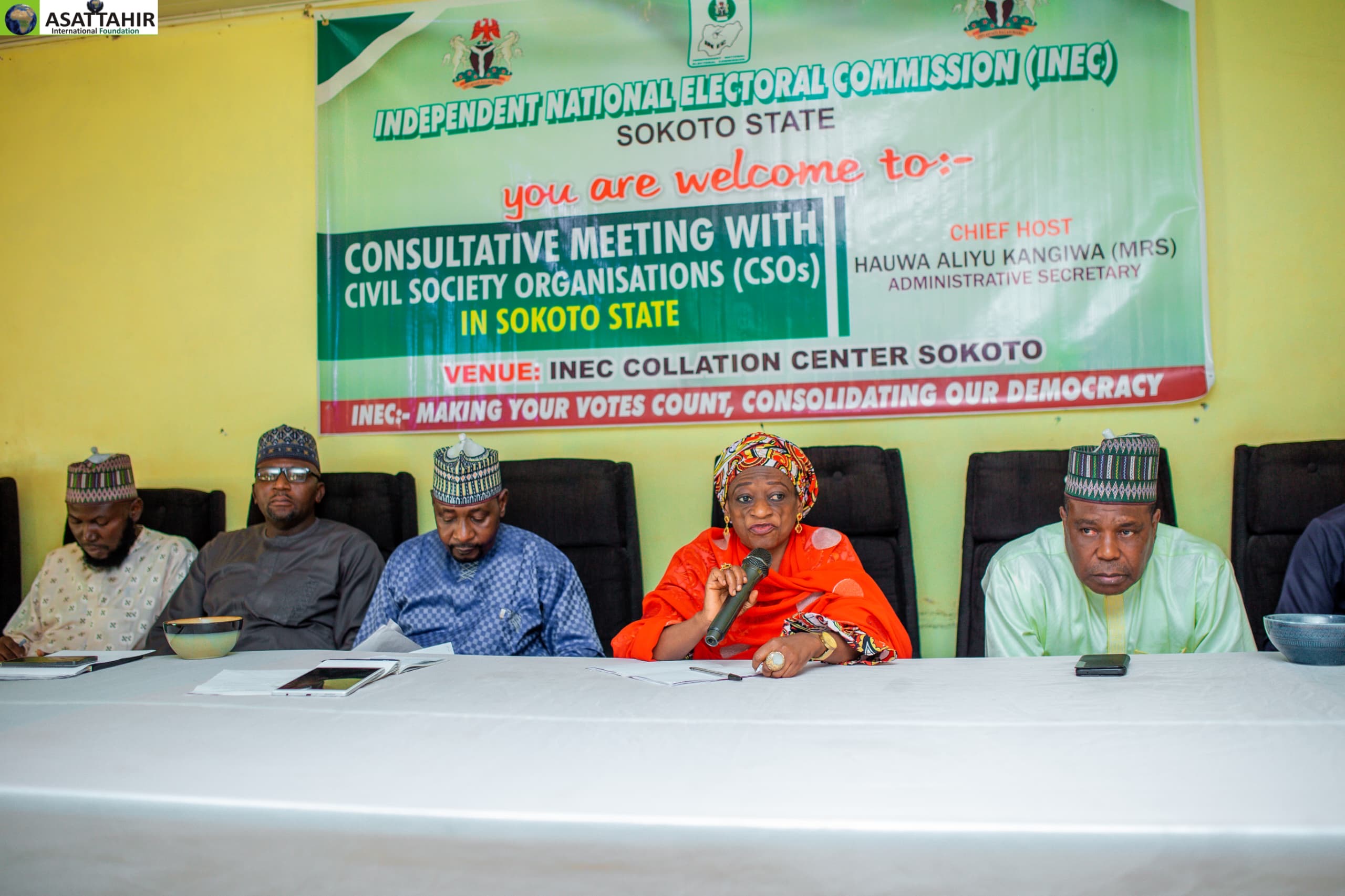 In her opening remarks, the Administrative Secretary INEC Sokoto office Barr. Mrs. Hauwa Aliyu Kangiwa welcomed all members of the civil society organizations and various associations to the meeting.