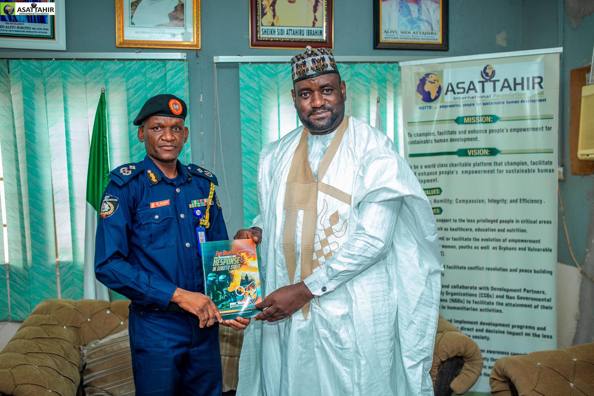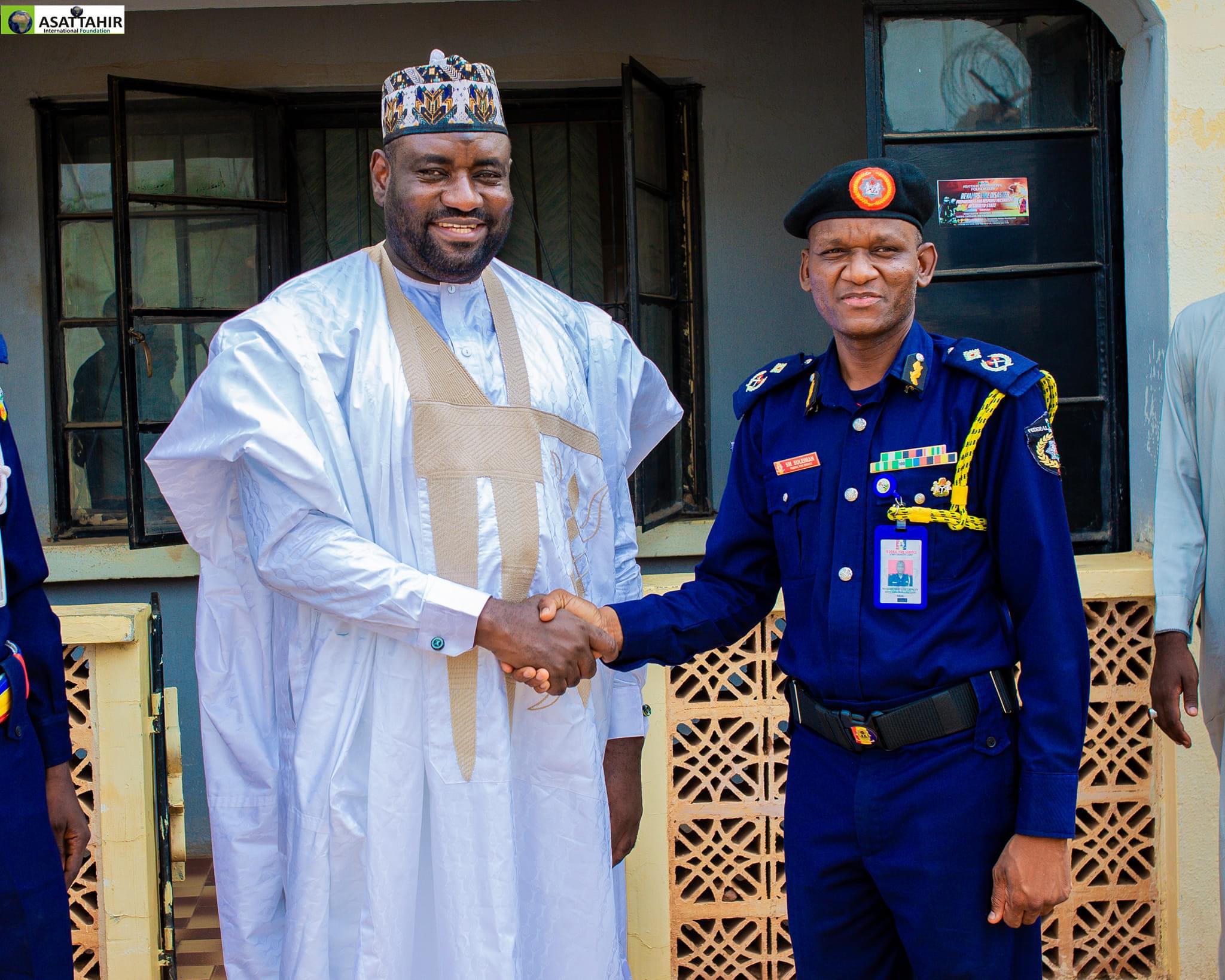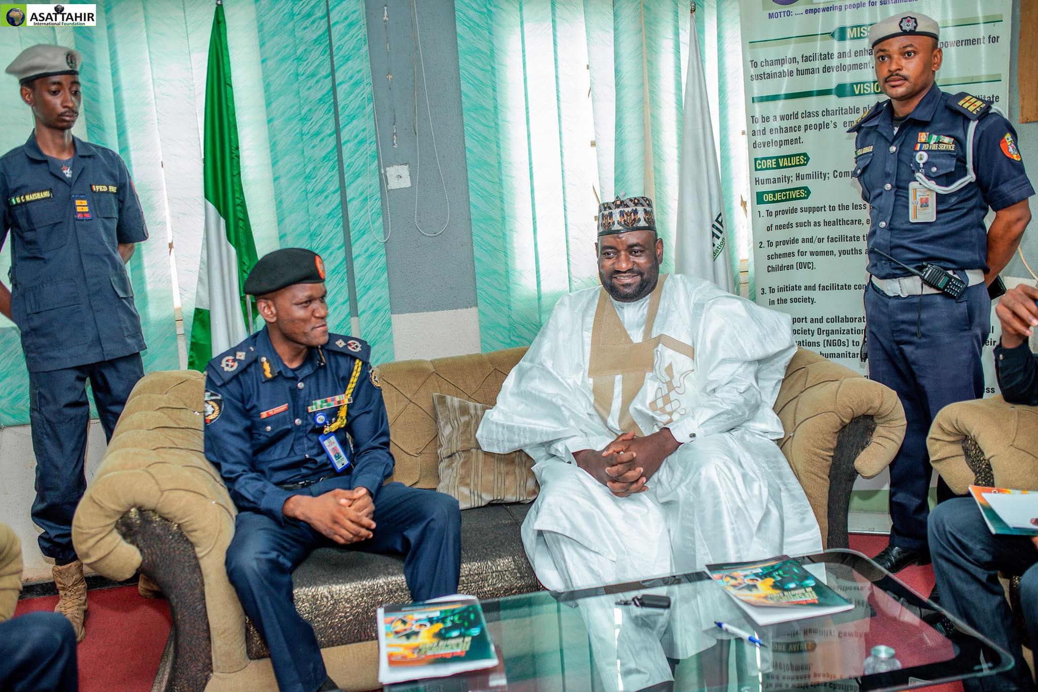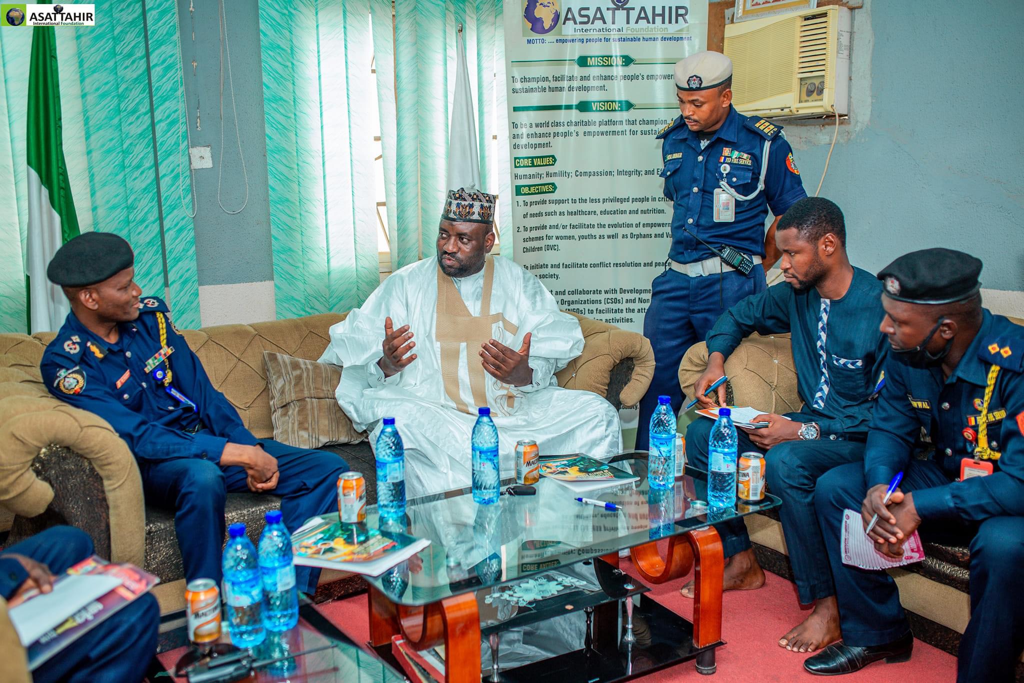 Today 17th May 2024, personnel of the Federal Fire Service Sokoto state command led by the Commandant Suleiman Mohammed Suleiman paid a courtesy visit to ASATTAHIR International Foundation (AIF).