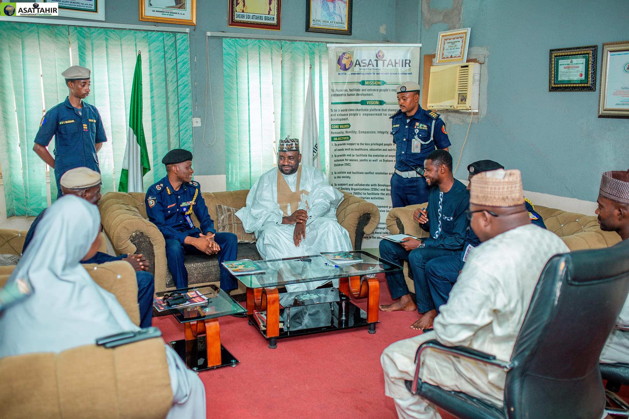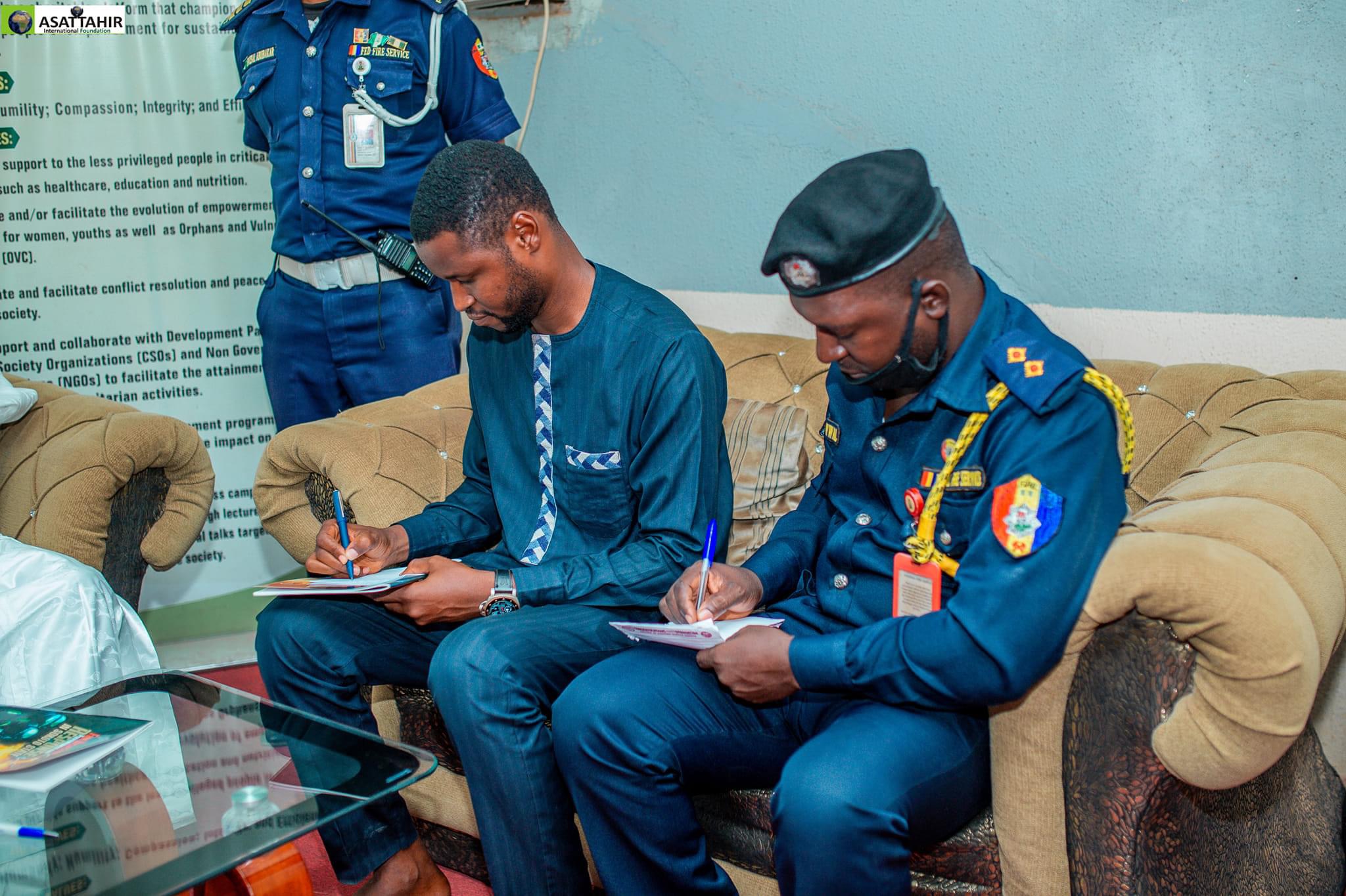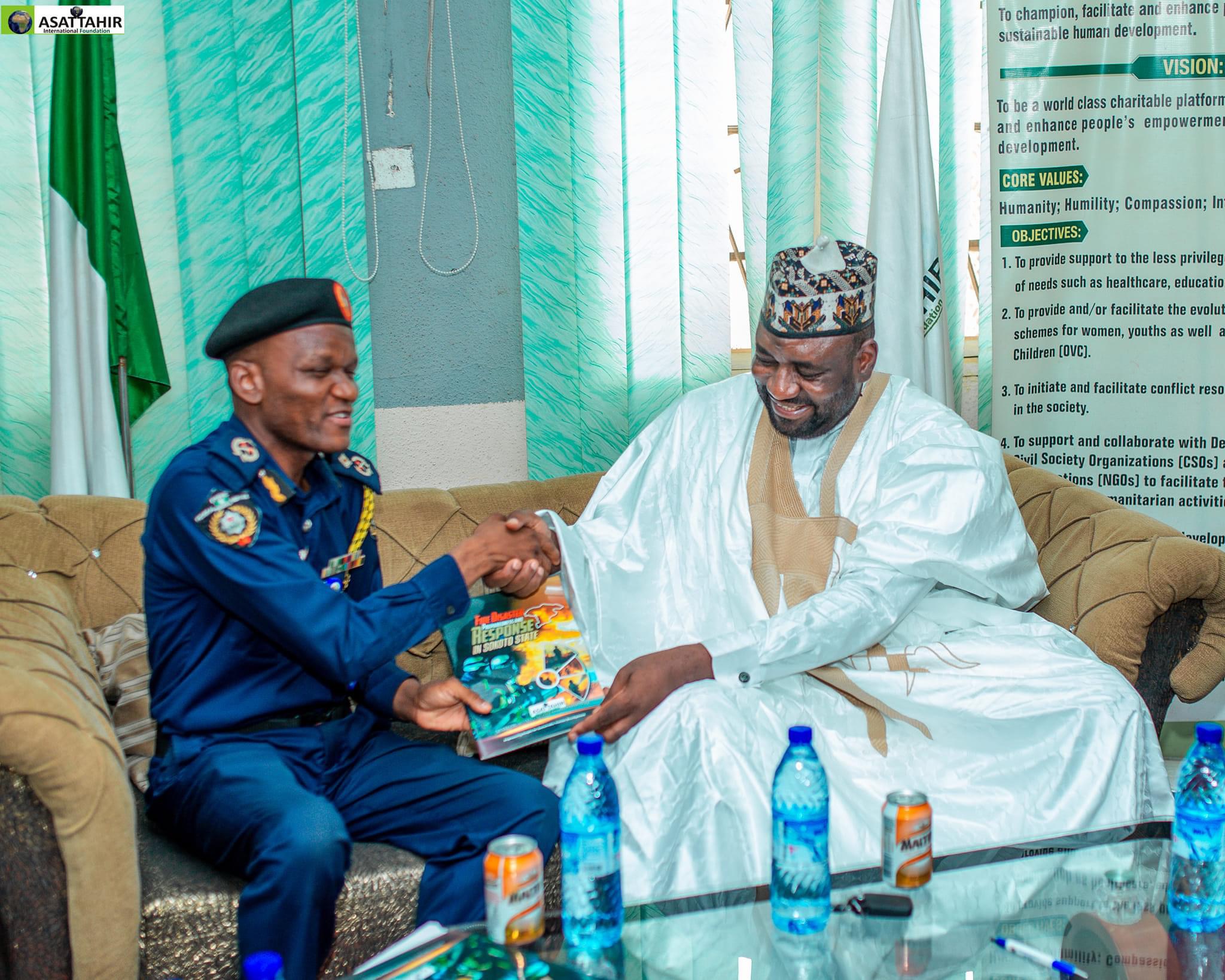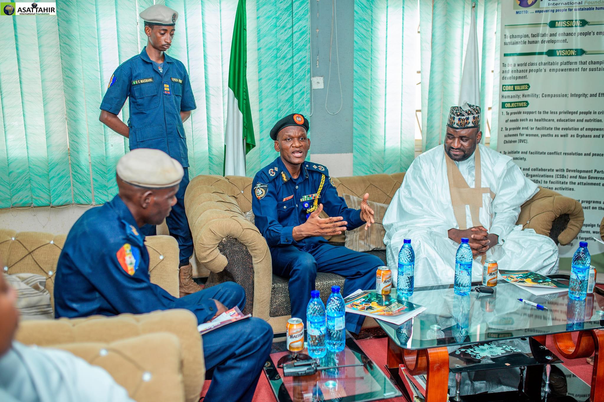 Today 17th May 2024, personnel of the Federal Fire Service Sokoto state command led by the Commandant Suleiman Mohammed Suleiman paid a courtesy visit to ASATTAHIR International Foundation (AIF).