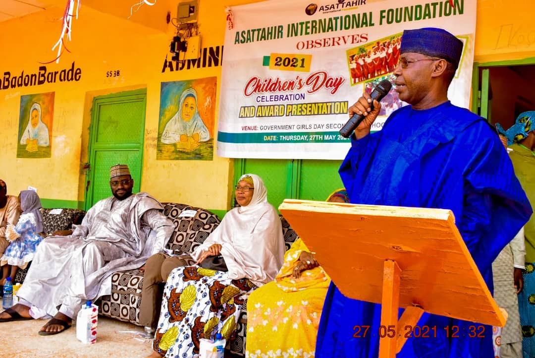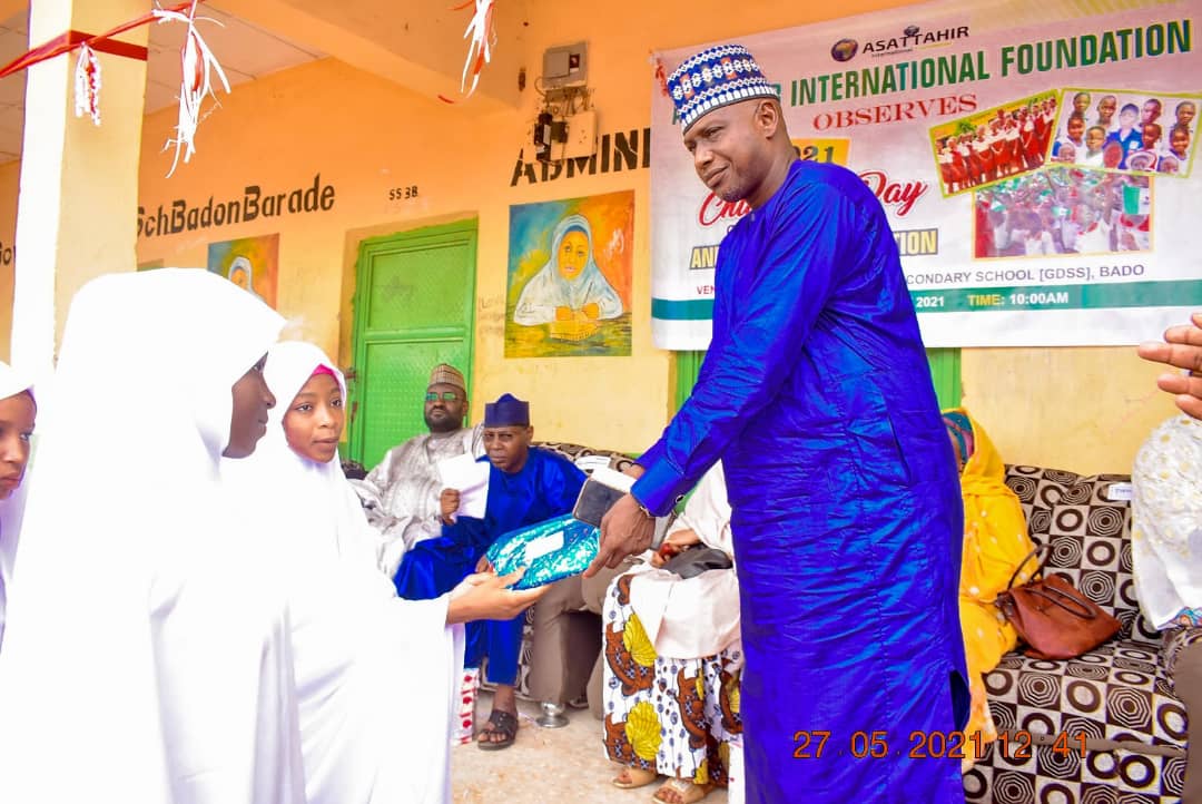As a mark of respect for the plight of Children all over the world, ASATTAHIR Foundation celebrated with the students of GGDSS Badon Barade, today the 27th day of May, 2021 at the school premises. The ceremony was hosted by the Principal of the school, Hajiya Ramatu Halidu and chaired by the Hon. Commissioner of Education, who was represented by the by the Director Quality Assurance of the Ministry, Alhaji Aĺiyu Jodi Tambuwal. Oher dignitaries at the occasion include the Special Guest of Honour, Hajiya Lubabatu Abubakar, Director General, Women and Girl Child Education, Permanent Member, Teachers’ Service Board, Hajiya Laraba Dattijo and the traditional ruler of the Bado, Alhaji Labaran Barade.