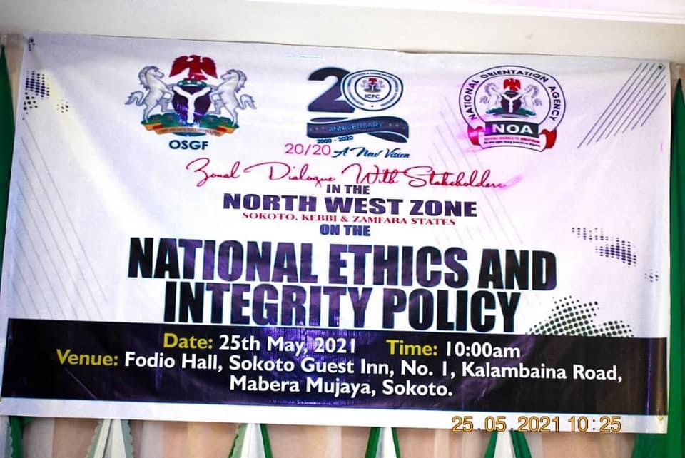 The dialgue featured presentations by the Director General of the National Orientation Agency (NOA) and the Chairman Independent Corrupt Practices and other Related Offences Commission (ICPC). NOA’s presentation focused on an overview of the policy framework and objectives of the National Policy on Ethics and Integrity. The representative of the National Chairman of the ICPC, who connected to the dialogue virtually, spoke extensively on partnership for the implementation of the Action-Plan and Consequence Management Template of the Policy.