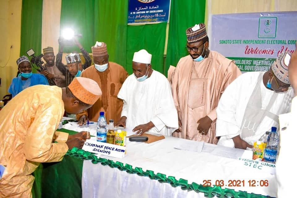 Aliyu Sidi Attahiru, Founder and Chairman, ASATTAHIR International Foundation, Prof. Sani Dangoggo, Vice Chancellor, Sokoto State University and representative of the Resident Commissioner, Independent National Electoral Commission (INEC) signed as witness in the Peace Accord.