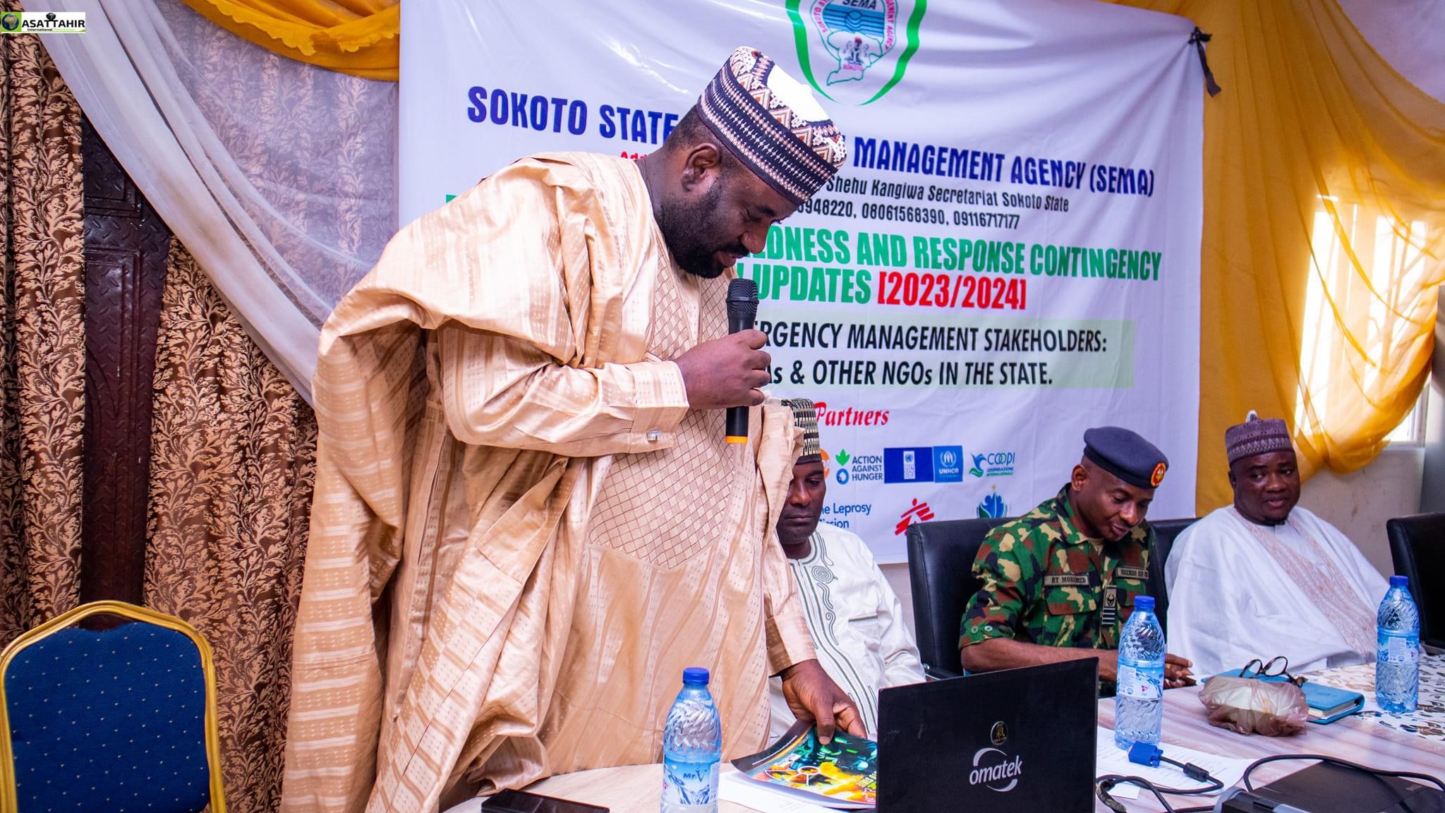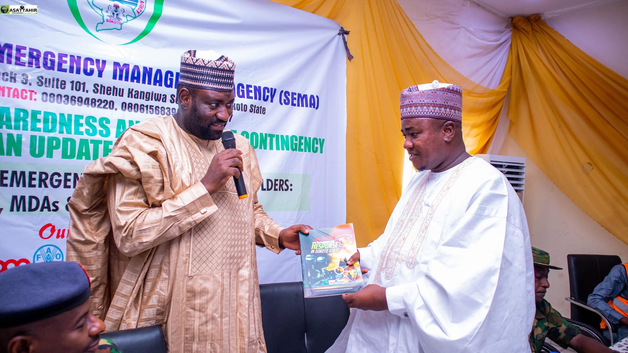 In his good will message, the Founder and Chairman Board of Trustees of ASATTAHIR International Foundation Aliyu Sidi Attahiru commended the.effort of SEMA, adding that preparedness to disaster is not a matter of choice but an effort that must be deliberately put in place to mitigate it or respond to it when it occurs. He further recalled that in its efforts to unearth the factors causing fire outbreak, the impacts and blueprints for mitigating and responding to future incidences, ASATTAHIR International Foundation conducted a research on fire disaster preparedness and response in Sokoto state. He therefore used the opportunity of this gathering to present the published copy of the research to the Director General of SEMA which has already been disseminated earlier this year.