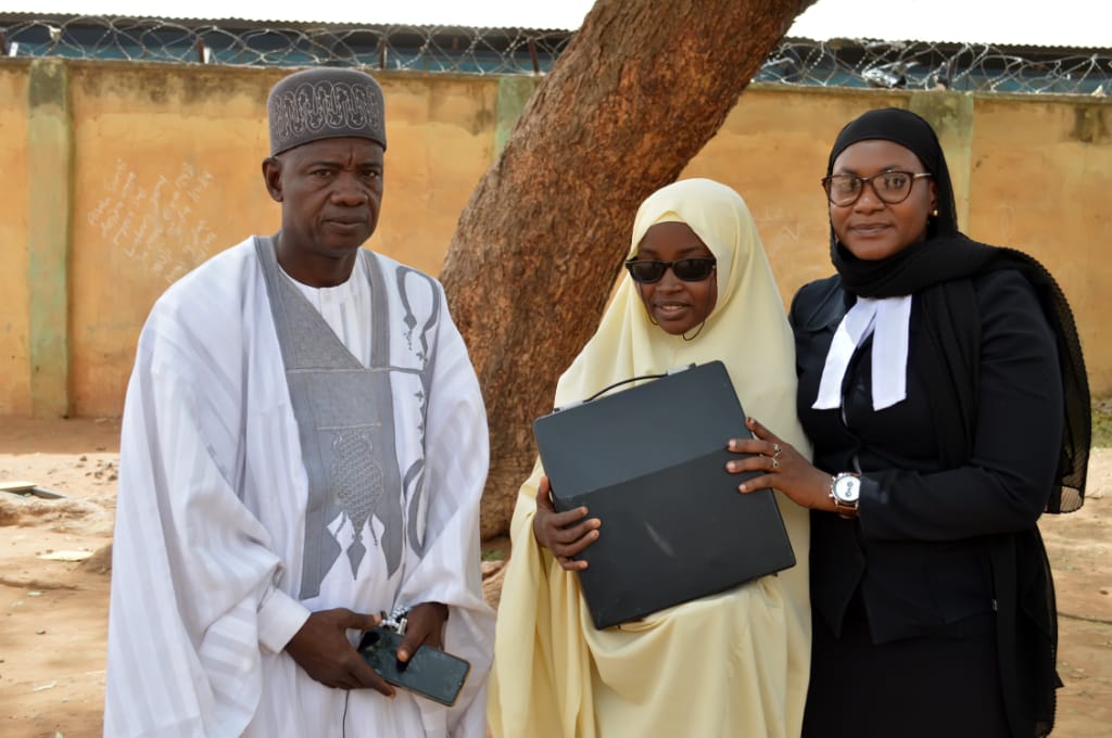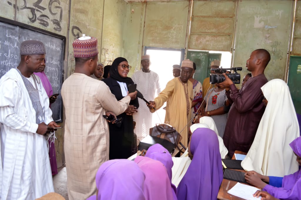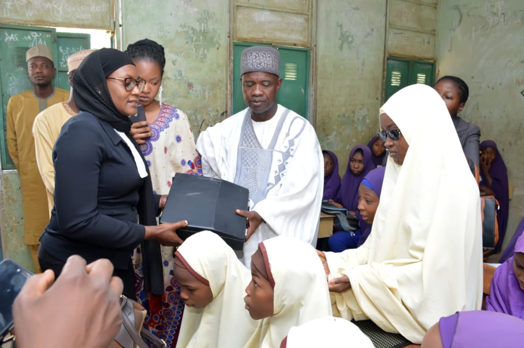 On arrival at the school, the delegation led by the Legal Adviser of the Foundation, Barrister Rashdat, accompanied by the two female Trustees of the Foundation, Zuwaira Umar Yabo and Sa’adatu Musa Gotomo and the Foundation’s two female corps members, Patience Ajiga and Modinat Ashiru were warmly received by the Principal, malam Aliyu Modi Sifiwa. After a brief interaction with the Principal on the essence of the visit, the delegation proceeded to the Classroom of Maryam Shehu Adarawa for formal presentation of the typewriter.