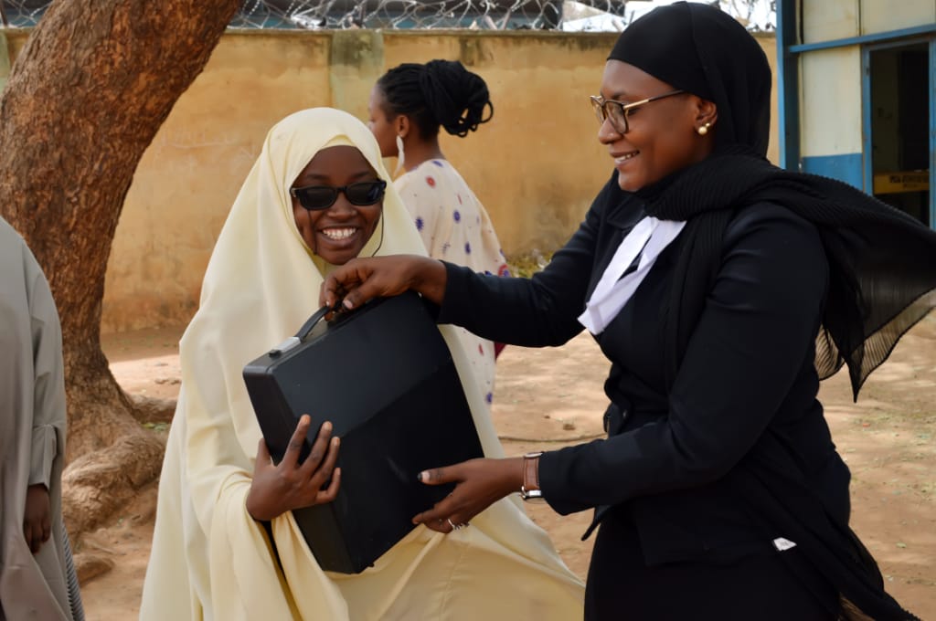 After a brief remark and motivational talk by Barrister Rashidat on prospects and hope that awaits educated people, regardless of their physical challenges, the gift was formally presented to Maryam with applause from the class and the entourage.