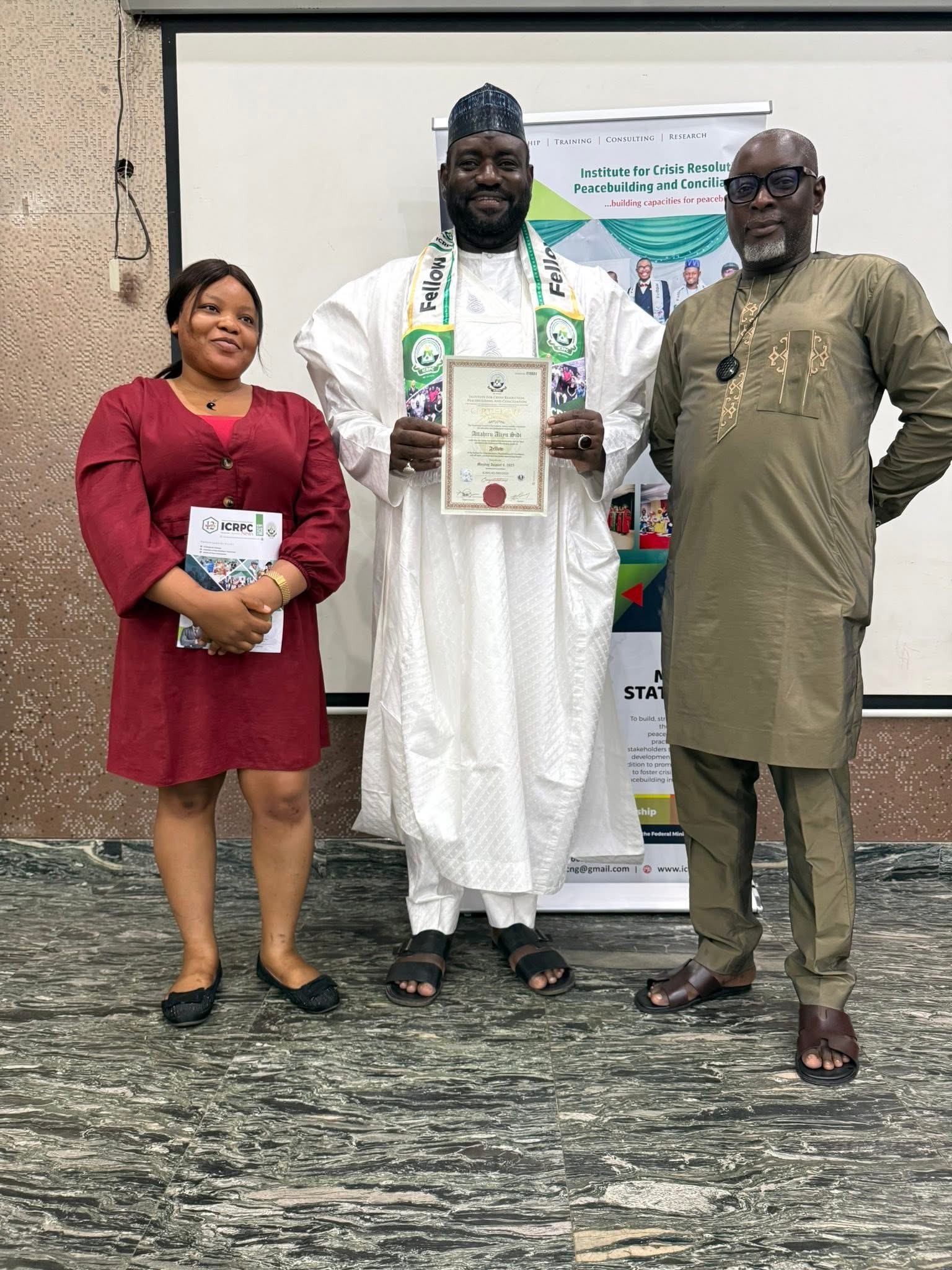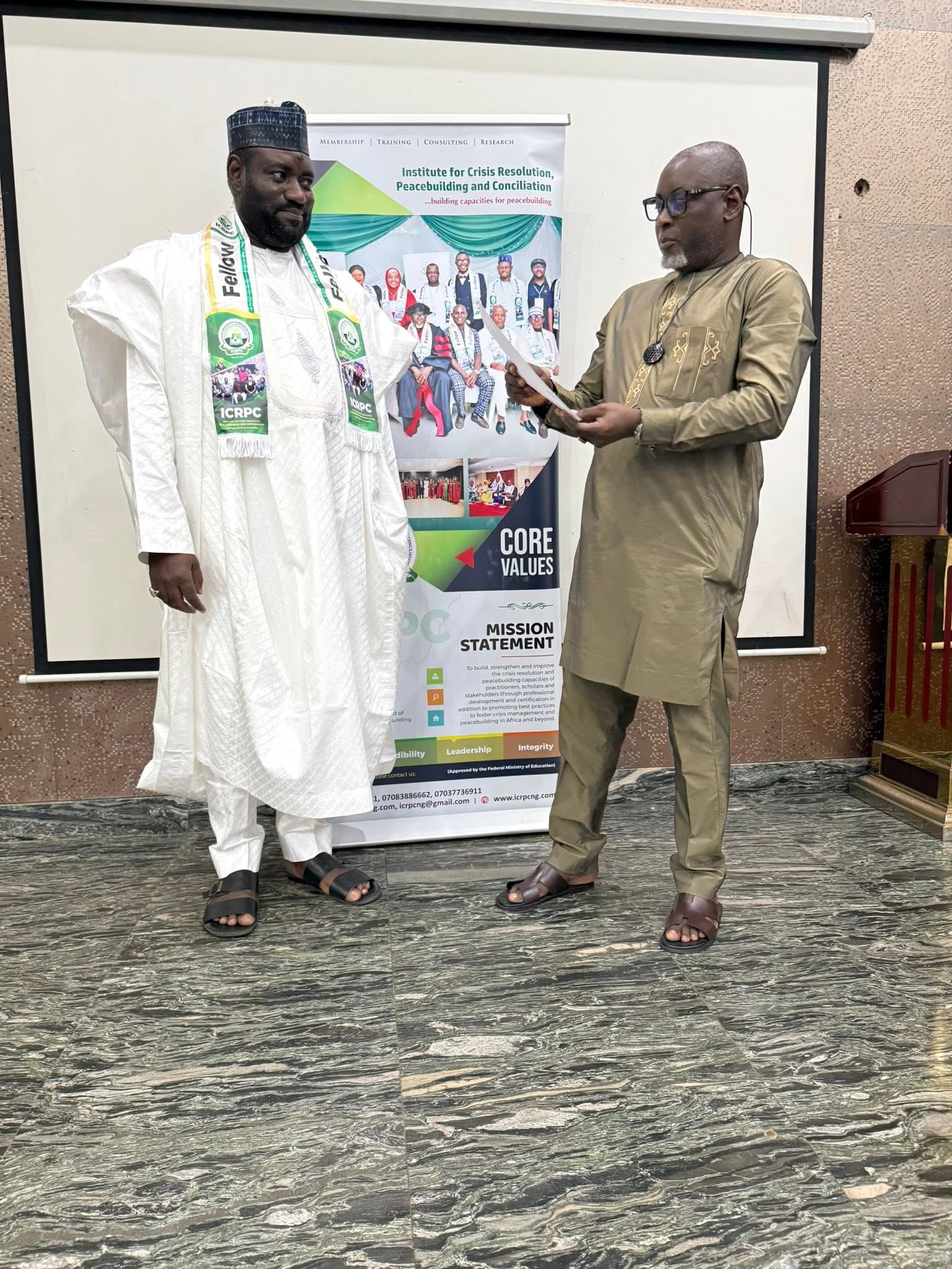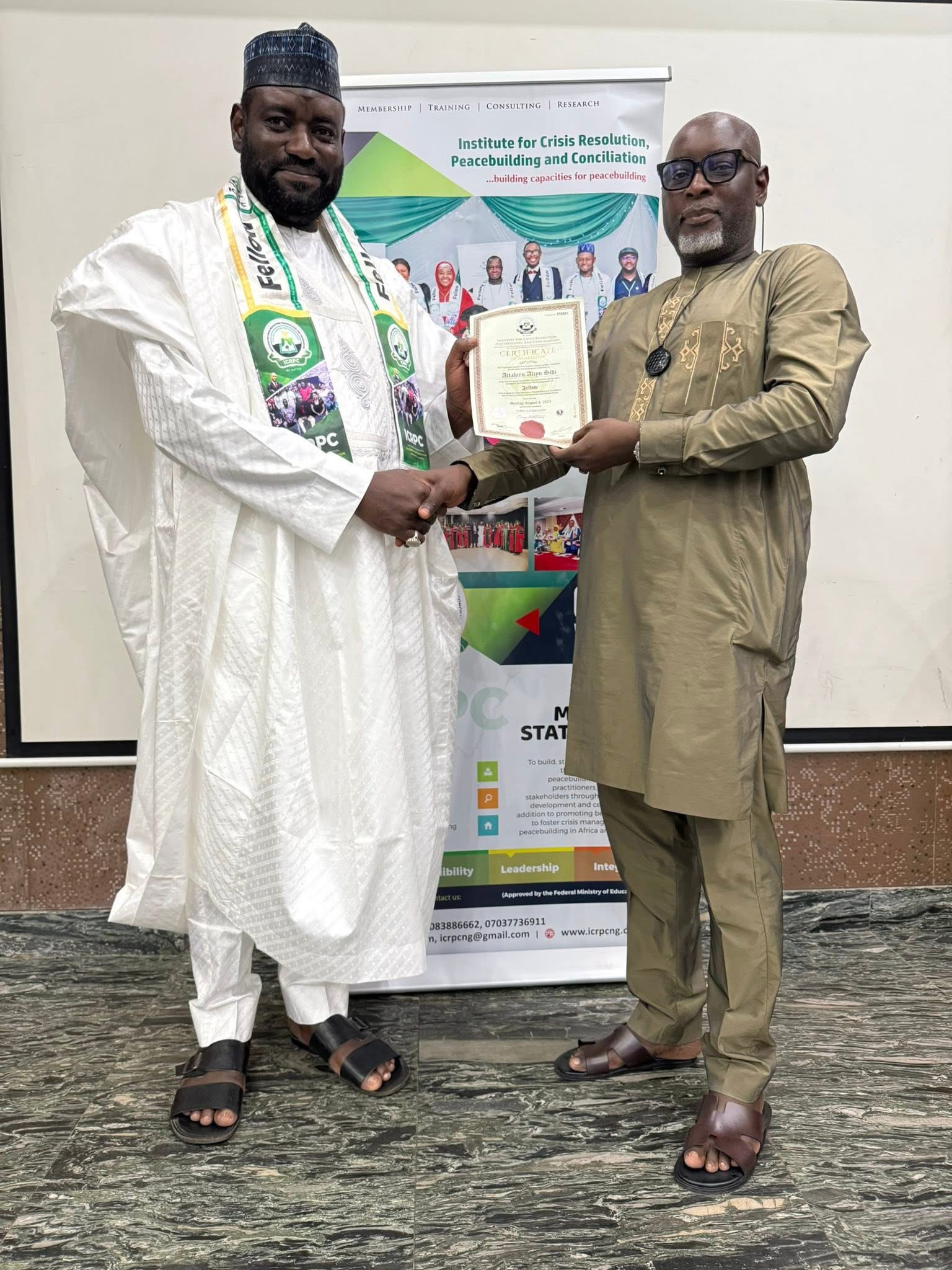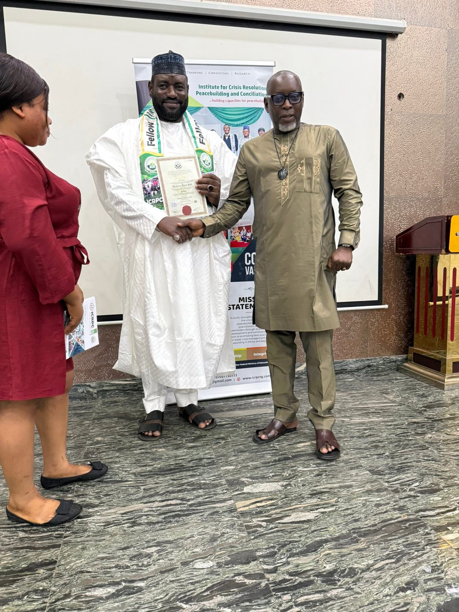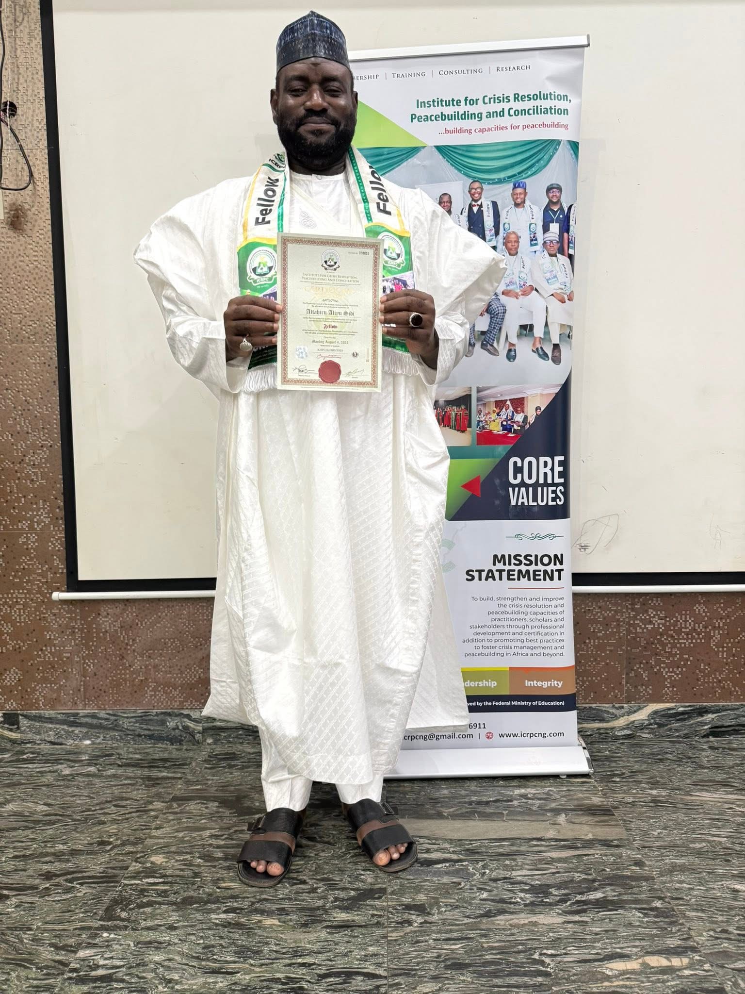 Today 5th August 2025, the Founder and Chairman, Board of Trustees of ASATTAHIR International Foundation (AIF), Aliyu Sidi Attahiru, MBA, FICRPC, was formally admitted as a Fellow of the Institute for Crisis Resolution, Peacebuilding and Conciliation (ICRPC).